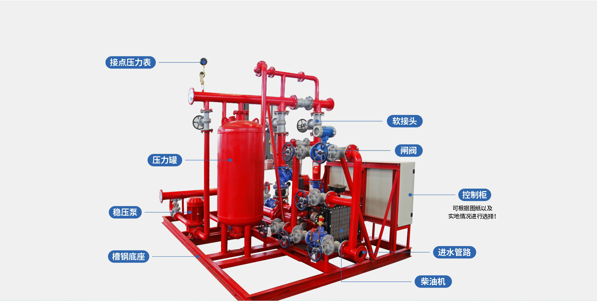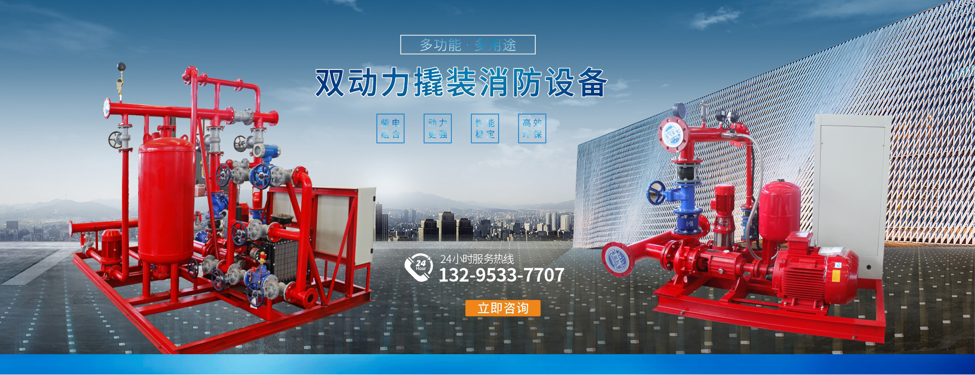 双动力撬装消防设备是各种消防栓、喷淋消防主泵的用泵:适合用于各种消防增压稳压用泵场合;各种别墅、小区等消防系统;工业与民用建筑消防系统;适用于各种油库、油品装卸码头、地铁站、物流园等消防等级要求高的场所。